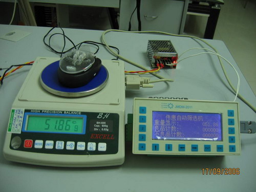 JMDM高精度自動(dòng)篩選器物品自動(dòng)稱重篩選系統(tǒng)重量篩選器 JMDM物品自動(dòng)稱重篩選系統(tǒng)采用深圳市精敏數(shù)字機(jī)器有限公司自主研發(fā)生產(chǎn)的稱重篩選系統(tǒng)廣泛應(yīng)用于各行業(yè)物品的重量篩選、分離和統(tǒng)計(jì),由稱重電子秤和篩選控制系統(tǒng)兩部分組成。 產(chǎn)品功能特性如下: 1、對(duì)半成品進(jìn)行稱重和篩選,可設(shè)定物品的標(biāo)準(zhǔn)重量以及物品的重量范圍; 2、對(duì)達(dá)標(biāo)重量范圍內(nèi)的物品,稱重篩選系統(tǒng)將驅(qū)動(dòng)良品汽缸動(dòng)作; 3、對(duì)不達(dá)標(biāo)重量范圍的物品,稱重篩選系統(tǒng)將驅(qū)動(dòng)次品汽缸動(dòng)作,同時(shí)驅(qū)動(dòng)報(bào)警器發(fā)出報(bào)警聲; 4、稱重篩選系統(tǒng)有良品計(jì)數(shù)和不良品計(jì)數(shù)兩個(gè)計(jì)數(shù)器,可統(tǒng)計(jì)已稱重篩選的物品數(shù)量; 5、稱重可精確度到0.01克; 6、可以設(shè)定稱重的臨界重量,低于臨界重量時(shí)稱重篩選系統(tǒng)不會(huì)作出良品和次品判斷。