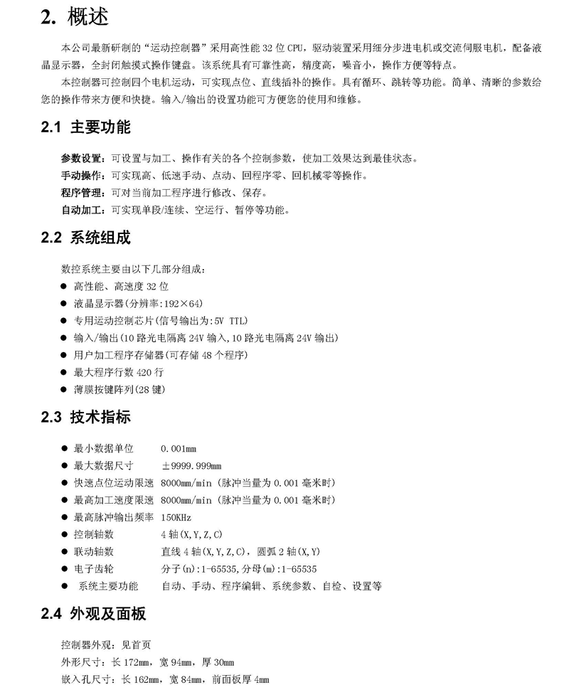 本公司****研制的“CM20L-40四軸運動控制器”采用高性能32位CPU,驅(qū)動裝置采用細(xì)分步進(jìn)電機或交流伺服電機,配備液晶顯示器,全封閉觸摸式操作鍵盤。該系統(tǒng)具有可靠性高,精度高,噪音小,操作方便等特點。