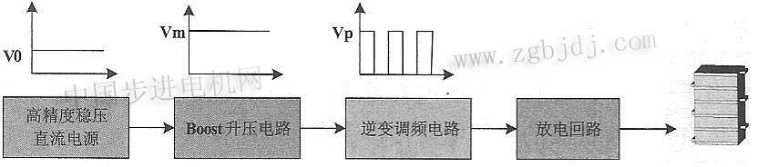 本文采用Dc/Dc變換的開(kāi)關(guān)電源的原理,采用開(kāi)環(huán)控制的方式,研制了結(jié)構(gòu)簡(jiǎn)單,調(diào)節(jié)方便,低成本的電路。總體壓電驅(qū)動(dòng)電源的結(jié)構(gòu)如圖1所示。