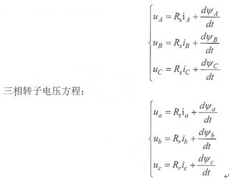 首先列寫(xiě)靜止坐標(biāo)系下的DFIG數(shù)學(xué)模型,為了便于分析問(wèn)題,通常作如下的假設(shè):1)忽略空間諧波,設(shè)三相繞組對(duì)稱,在空間中互差120。電角度,所產(chǎn)生的磁動(dòng)勢(shì)沿氣隙按正弦規(guī)律分布;2)忽略磁路飽和,認(rèn)為各繞組的自感和互感都是恒定的;3)忽略鐵心損耗;4)不考慮頻率變化和溫度變化對(duì)繞組電阻的影響;5)如無(wú)特別說(shuō)明,轉(zhuǎn)子側(cè)的參數(shù)都是經(jīng)過(guò)折算到定子側(cè)的參數(shù),折算后的定子和轉(zhuǎn)子繞組匝數(shù)相等。