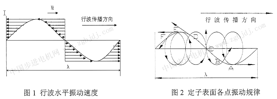 由電機(jī)的輸出功率W=F×V,要得到較人輸出功率,就要F大,v也要大。首先從行波電機(jī)接觸模型對(duì)超聲電機(jī)的速度分析,由圖1可知在波峰處質(zhì)點(diǎn)水平速度****,存中線位置水甲速度為零。