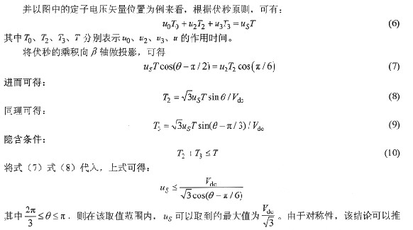 并以圖中的定子電壓矢量位置為例來看,根據(jù)伏秒原則,可有:
