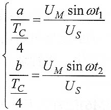 圖l為對(duì)稱規(guī)則采樣sPwM波生成原理圖,圖中Us是三角載波峰值,Tc是三角載波周期,t1為采樣時(shí)刻,由圖可推導(dǎo)其數(shù)學(xué)模型: