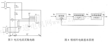 電壓電流信號(hào)經(jīng)采樣后為正弦波信號(hào),故需經(jīng)過過零比較后轉(zhuǎn)換成兩路方波信號(hào)。方波的幅值反映了電壓和電流相位差。兩列方波再通過cD4046鑒相器PD鑒相輸出為電壓和電流相位差的信號(hào)UD,信號(hào)經(jīng)外接低通濾波電路LF濾波成反映相位差變化的直 |