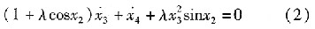 根據(jù)拉格朗日方程,選擇狀態(tài)變量x=[q 1 q 2 q 1 q 2] T,進(jìn)行化簡,容易得到如下動力學(xué)方程: