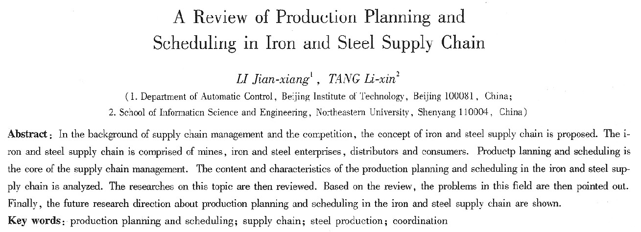 關(guān)鍵詞:生產(chǎn)計(jì)劃與調(diào)度;供應(yīng)鏈;鋼鐵生產(chǎn);協(xié)調(diào)