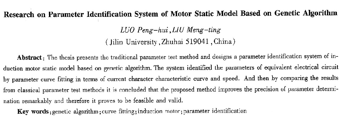 關(guān)鍵詞:遺傳算法;曲線擬合;感應(yīng)電動機(jī);參數(shù)辨識