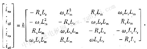 在α、β坐標(biāo)系下,以電機(jī)定轉(zhuǎn)子電流為狀態(tài)變量,得到異步電動(dòng)機(jī)的狀態(tài)方程: