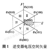 對(duì)于一臺(tái)三相兩點(diǎn)式電壓型逆變器,一般由三組、六個(gè)開(kāi)關(guān)組成8個(gè)開(kāi)關(guān)狀態(tài)(Sa、Sb、Sc、Sa、Sb、Sc、),并可以形成如圖1所示的8個(gè)電壓空間矢量。
