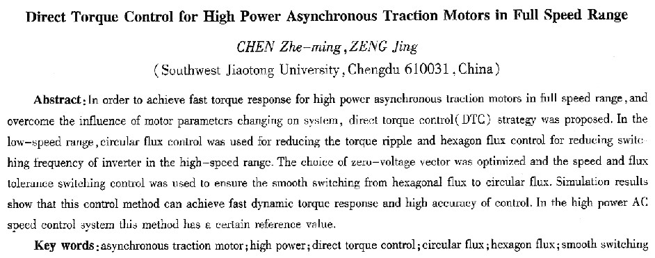 關(guān)鍵詞:異步牽引電動(dòng)機(jī);大功率;直接轉(zhuǎn)矩控制;圓形磁鏈;六邊形磁鏈;平滑切換