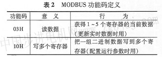 功能碼告訴被尋址到功率分析儀執(zhí)行何種功能。表2給出了系統(tǒng)中功能碼的定義。