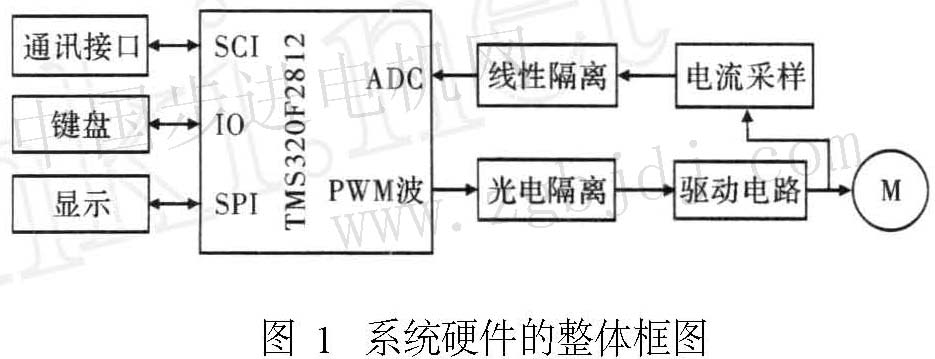 本文提出的驅(qū)動(dòng)系統(tǒng)以高性能DSP芯片刪$320F2812為核心,加入驅(qū)動(dòng)電路、電流檢測電路、各種通信接口和鍵盤顯示電路,構(gòu)成功能齊全的三相混合式步進(jìn)電機(jī)細(xì)分驅(qū)動(dòng)系統(tǒng)的硬件
