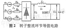 轉(zhuǎn)子整流回路包括轉(zhuǎn)子繞組、二極管整流器、平波電抗器L、IGBT斬波器和電容電壓,等值電路如圖2所示.
