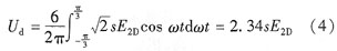 由圖4的波形可推導(dǎo)出三相橋式整流電路空載整流電勢(shì)的平均值U:
