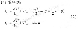 上式中,Uref、U、4U6以及T、t4、t6分別為參考電壓矢量、扇區(qū)I的非零電壓矢量及作用時間;t0、t7為零電壓矢量(U0,U7)作用時間。