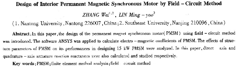 關(guān)鍵詞:水磁同步電動(dòng)機(jī);有限元分析;場(chǎng)路結(jié)合法