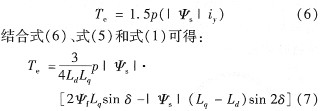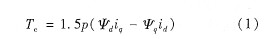 在dq坐標(biāo)下,永磁同步電動(dòng)機(jī)的轉(zhuǎn)矩公式為[2]: