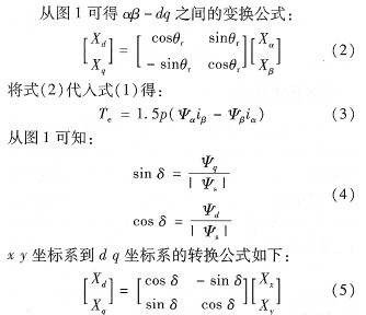 圖1中的δ為定子磁鏈Ψs和轉(zhuǎn)子磁鏈Ψq之間的夾角,即功角。當(dāng)系統(tǒng)在一定轉(zhuǎn)速下穩(wěn)定運(yùn)行時(shí),δ不變。當(dāng)系統(tǒng)狀態(tài)改變時(shí),δ在不斷變化。