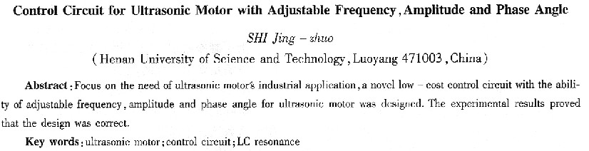 關(guān)鍵詞:超聲波電動機(jī);控制電路;Lc諧振