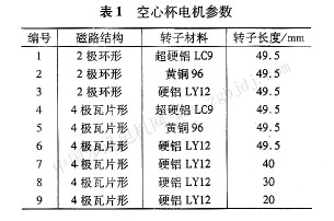 電磁阻力矩與轉(zhuǎn)子轉(zhuǎn)速的關(guān)系稱為空心杯電機(jī)的電磁阻力矩特性。本文研制不同磁路結(jié)構(gòu)、轉(zhuǎn)子材料和轉(zhuǎn)子長(zhǎng)度的空心杯電機(jī)樣機(jī),通過這些樣機(jī)的實(shí)驗(yàn)對(duì)其電磁阻力矩特性進(jìn)行了研究。