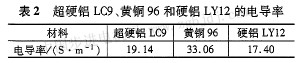 超硬鋁LC9、黃銅96和硬鋁LYl2三種材料的電導(dǎo)率如表2所示。