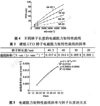 的電磁阻力矩****,硬鋁LYl2的電磁阻力矩最小,但圖3的測(cè)試結(jié)果表明黃銅96的電磁阻力矩****,而超硬鋁Lc9的電磁阻力矩最小。由于缺乏相應(yīng)的設(shè)備,未能檢測(cè)實(shí)際各樣機(jī)材料的電導(dǎo)率,其中的原因尚待進(jìn)一步分析。4電磁阻力矩特性與轉(zhuǎn)子長(zhǎng)度的關(guān)系.