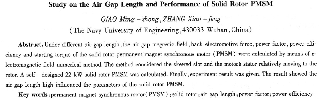 關(guān)鍵詞:永磁同步電動(dòng)機(jī);實(shí)心轉(zhuǎn)子;氣隙長度;功率因數(shù);效率