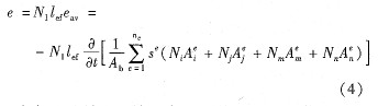 式中:Ab為槽面積。如果線圈邊劃分為ne個(gè)單元(有N,匝),則一個(gè)線圈邊的平均電勢(shì)為: