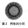 采用三角形網(wǎng)格,利用MESHTOOL中的智能網(wǎng)格剖分工具進行剖分,精度為6,剖分結(jié)果如圖2所示,形成有限元分析模型,進人加載、求解階段。