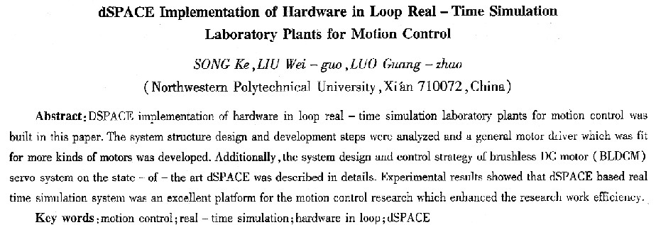 摘要:應(yīng)用dSPACE半物理仿真系統(tǒng),研制一套電動(dòng)伺服系統(tǒng)硬件在回路實(shí)時(shí)仿真實(shí)驗(yàn)平臺。研究了基于dSPACE系統(tǒng)的運(yùn)動(dòng)控制系統(tǒng)半物理仿真實(shí)驗(yàn)平臺的系統(tǒng)結(jié)構(gòu)及開發(fā)流程,設(shè)計(jì)了一種適合于多種類型電機(jī)的通用電機(jī)驅(qū)動(dòng)裝置,最后在該實(shí)時(shí)仿真實(shí)驗(yàn)平臺上研究了無刷直流電動(dòng)機(jī)伺服控制系統(tǒng)的設(shè)計(jì),并通過實(shí)驗(yàn)結(jié)果驗(yàn)證了系統(tǒng)設(shè)計(jì)的合理性及控制的有效性。研究成果表明,dSPACE實(shí)時(shí)仿真系統(tǒng)為運(yùn)動(dòng)控制系統(tǒng)的研究與開發(fā)提供了一個(gè)良好的實(shí)驗(yàn)平臺,大大提高了研究工作的效率。