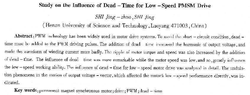 本文以基于DSP的三相永磁同步電動(dòng)機(jī)驅(qū)動(dòng)系統(tǒng)為例,在理論分析的基礎(chǔ)上,結(jié)合仿真與實(shí)驗(yàn)研究,討論了電動(dòng)機(jī)低速輕載運(yùn)行情況PWM死區(qū)的影響。