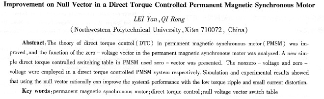 永磁同步電動(dòng)機(jī)直接轉(zhuǎn)矩控制零矢量的應(yīng)用研究