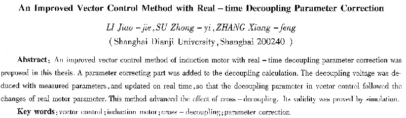 摘要:提出了一種實時修正感應(yīng)電動機(jī)矢量控制中解耦參數(shù)的方法。在矢量控制的電壓解耦計算中增加了參數(shù)修正計算,通過可測量的參數(shù)值推導(dǎo)解耦電壓參數(shù),并實時更新,矢量控制的解耦參數(shù)能跟隨電動機(jī)實際運(yùn)行參數(shù)的變化,提高了解耦的效用。仿真結(jié)果表明該方法是有效的。
