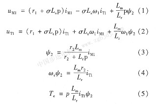 M-T同步旋轉(zhuǎn)坐標(biāo)系下,感應(yīng)電動機(jī)的數(shù)學(xué)模型[1]可描述為: