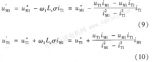 則式(7)就是解耦項修正公式,根據(jù)這個公式可由電機(jī)測量參數(shù)推導(dǎo)交叉耦合項的值,在解耦算法中應(yīng)用該值,實時修正交叉解耦項的大小,則可保證解耦電壓總是與實際運(yùn)行參數(shù)匹配。將式(7)中的ω1Lsσ一代人反饋電壓解耦算法中,得實時解耦控制電壓公式為: