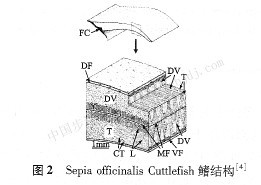 保持身體平衡的;而cuttIefish的鰭圍繞在外套膜上,除了保持身體的平衡外,還可以利用其波浪形的運(yùn)動(dòng)推動(dòng)自身前進(jìn)、后退和轉(zhuǎn)彎等,但噴水推進(jìn)等功能差別不大[2]。