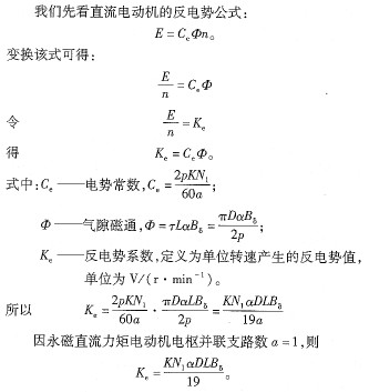 如果該電機(jī)采用虛槽法降低片問電壓,則不會(huì)影響原電機(jī)性能,又可顯著降低片間電壓。但采用虛槽法對(duì)單波繞組的直流力矩電動(dòng)機(jī)來說也有一定難度,即單波繞組無論是實(shí)槽還是虛槽,其槽數(shù)都必須是奇數(shù),否則下線無法進(jìn)行。若一個(gè)實(shí)槽中采用3個(gè)虛槽,下線可行,但工藝難度又增加;若一個(gè)實(shí)槽中采用2個(gè)虛槽,對(duì)降低片問電壓和減小換向電感都有利,但又犯了單波繞組不允許偶數(shù)虛槽的大忌。如上面舉例電機(jī),實(shí)槽數(shù)臣=11l,若一個(gè)實(shí)槽采用2個(gè)虛槽,則總虛槽數(shù)Kj=222。這里盡管實(shí)槽數(shù)為奇數(shù),但一個(gè)實(shí)槽變兩個(gè)虛槽后,總虛槽數(shù)則變?yōu)榕紨?shù)。這對(duì)疊繞組電機(jī)來說,下線不成問題;而對(duì)單渡繞組的力矩電動(dòng)機(jī)來說,下線有困難。那么,虛槽既然對(duì)降低片問電壓,減小換向元件電感有好處,采用兩倍偶數(shù)虛槽是否就根本不行呢?回答是也不盡然。若將虛槽數(shù)222變?yōu)?21,下線就不成問題了。只不過這里作一點(diǎn)小小的犧牲,其中109個(gè)實(shí)槽中上下層放4個(gè)元件邊,2個(gè)實(shí)槽上下層放3個(gè)元件邊。這一點(diǎn)變化雖然對(duì)支路對(duì)稱性及反電勢(shì)有微小影響,但對(duì)電機(jī)總的性能來說,影響不大。經(jīng)此變化,原線圈個(gè)數(shù)由111變?yōu)?21,匝數(shù)由N1=20變?yōu)镹1=10,換向片數(shù)也由原來的111變?yōu)?2l,其它設(shè)計(jì)參數(shù)不變。這樣,既保持了原電機(jī)性能不變,又可降低片間電壓,減小換向電感。2極對(duì)數(shù)p,電樞槽數(shù)K,元件匝數(shù)Nl,極弧系數(shù)α,電樞外徑D,電樞鐵心長(zhǎng)度L,氣隙磁密B。等參數(shù)對(duì)永磁直流力矩電動(dòng)機(jī)的性能影響很大,能否從物