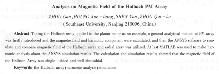 Halbach陣列是一種新型永磁體排列方式,它將不同磁化方向的永磁體按照一定的順序排列,使得陣列一邊的磁場顯著增強而另一邊顯著減弱,且很容易得到在空間較理想正弦分布的磁場。Halbach陣列的這些特性使其在永磁電機領域中具有廣闊的應用前景,Halbach陣列在學術界和工業(yè)界都受到了廣泛的關注。近十幾年來,在權威期刊和國際會議上,有很多與Halbach陣列相關的文獻出現。有些知名大學(如MIT、東京大學)已經對Hal—bach陣列的應用進行了卓有成效的研究口[2,3]。