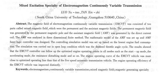 摘要:電磁耦合無級變速器(EMcVT)的磁場由兩部分組成,即由永磁極產(chǎn)生的恒定磁場和由直流輔助勵磁線