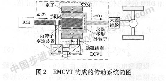 基于雙轉(zhuǎn)型電機的電傳動在汽車上的應(yīng)用研究越來越受到重視[1-7] “。新型電磁耦合無級變速器(以下簡稱EMcVT)與其它機械一電力復(fù)合型無級變速裝置比較,****不同之處在于子中嵌有直流勵磁線圈,該裝置能直接將永磁同步電動機模塊變成具有混合勵磁特性的永磁同步電動機模塊。