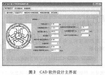 在windows下,永磁直流電動機設計軟件由在主窗口以圖標表示的若干應用程序組成,包括輔助計算程序、數(shù)據(jù)庫管理和維護及幫助等。系統(tǒng)所有的操作都在主窗口中進行,通過選擇主窗口上的菜單項,進入電機性能計算或數(shù)據(jù)庫管理,cAD軟件設計主界面如圖2所示。