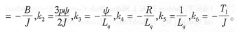 采用id=O的磁場定向控制,可以將式(1)-式(4)簡化為: