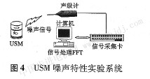 uSM的噪聲實(shí)驗(yàn)系統(tǒng)如圖4所示。不同預(yù)壓力下,uSM運(yùn)行過程中產(chǎn)生的噪聲通過精密聲級計(jì)測量采集后,送入計(jì)算機(jī)進(jìn)行FW處理并顯示。