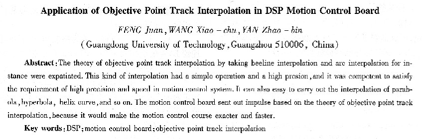 摘要:以直線插補和圓弧插補為例,闡述了目標(biāo)點跟蹤法插補原理。該插補算法運算簡單,插補精度高,能夠滿足控制系統(tǒng)高速高精度的要求,且易于實現(xiàn)拋物線、雙曲線、螺旋曲線等復(fù)雜曲線的插補。將該插補算法應(yīng)用于DSP運動控制卡中,通過DSP產(chǎn)生脈沖分配,從而實現(xiàn)對控制系統(tǒng)運動過程準確、快速的控制。