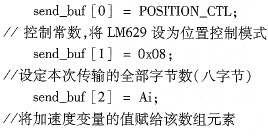 (6)用數(shù)據(jù)傳輸指令將變量的值通過單片機的端口D,發(fā)送給芯片LM629。下面是一個發(fā)送加速度數(shù)據(jù)的例子。