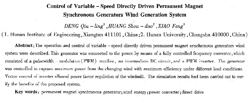 關(guān)鍵詞:永磁同步發(fā)電機;風能;功率變換器;直接驅(qū)動