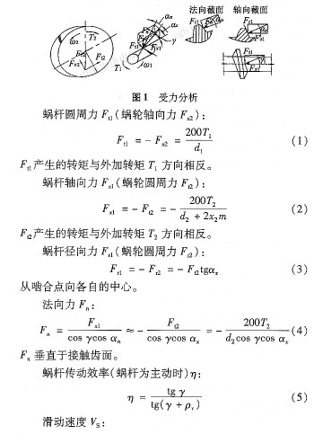 在對蝸輪蝸桿進行改進前,需對傳動副的受力及損耗進行分析。其受力及損耗進行分析如下: