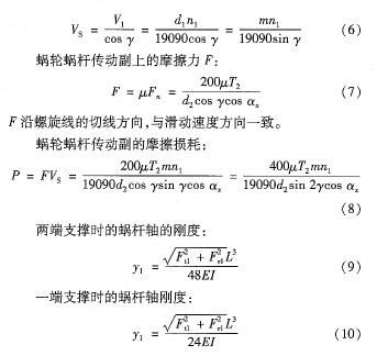 因減小蝸桿特性系數(shù),蝸抨直徑變小,所以必須降低全齒高或者采用雙模數(shù)計算蝸輪蝸桿的幾何尺寸,增大齒根圓直徑,提高蝸桿剛度。同時由式(3)及式(9)、式(10)可知,減小壓力角可以減小蝸桿的徑向力,提高蝸桿剛度。此外,采用兩端支撐時,可以使蝸桿嚙合處的撓度減半,蝸桿剛度倍增。