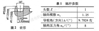 采用改進設計后的蝸桿如圖2所示,其效率比傳統(tǒng)電機高百分之6。其齒形及參數(shù)如表l所示。