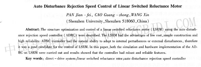 新型直線磁阻電機的自抗擾控制 潘劍飛,曹廣忠,王鑫 (深圳大學(xué),廣東深圳518060) 摘要:述了直線磁阻電機機械結(jié)構(gòu)改進以及自抗擾控制(ADRC)技術(shù)的應(yīng)用。一直線磁阻電機具有制造成 本低、結(jié)構(gòu)簡單以及可靠性高等優(yōu)點,自抗擾控制器具有適應(yīng)內(nèi)部以及外部干擾,實時調(diào)整和魯棒性強的特點。論 述了采用自抗擾技術(shù)對直線磁阻電機的速度調(diào)節(jié)仿真和實驗結(jié)果。仿真和實驗結(jié)果均表明,自抗擾控制器比 控制器具有在各種干擾作用下抗干擾能力強、魯棒性好等特點。 關(guān)鍵詞:直接驅(qū)動系統(tǒng);直線磁阻電機;自抗擾控制 中國分類號:TM352;TM359.4 文獻標識碼:A 文章編號:100l4—7018(2008)